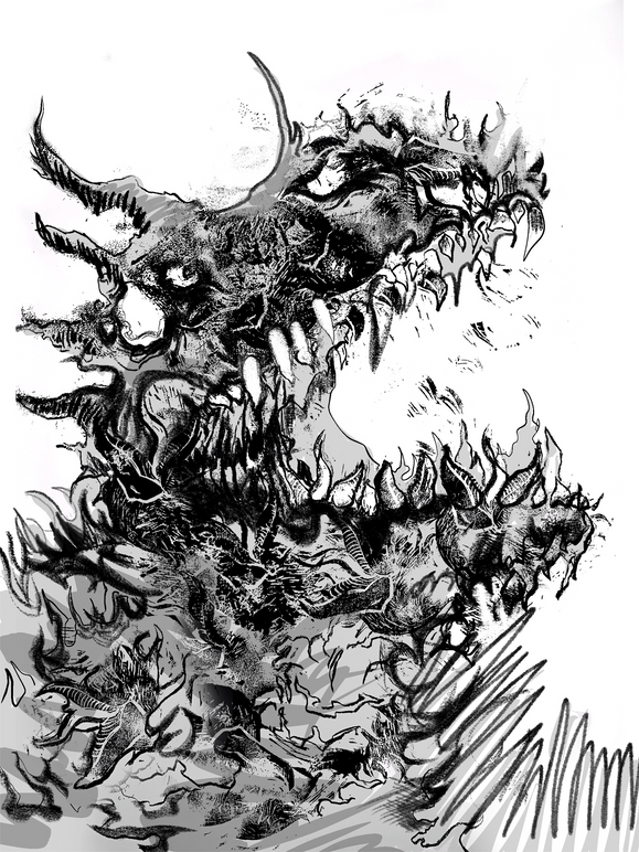 A large series of prints made to explore different methods of character design. Each print is made using a lino stamp of a body part or feature that was printed and arranged at random. Once dry they are worked back in to reveal the creatures you see.